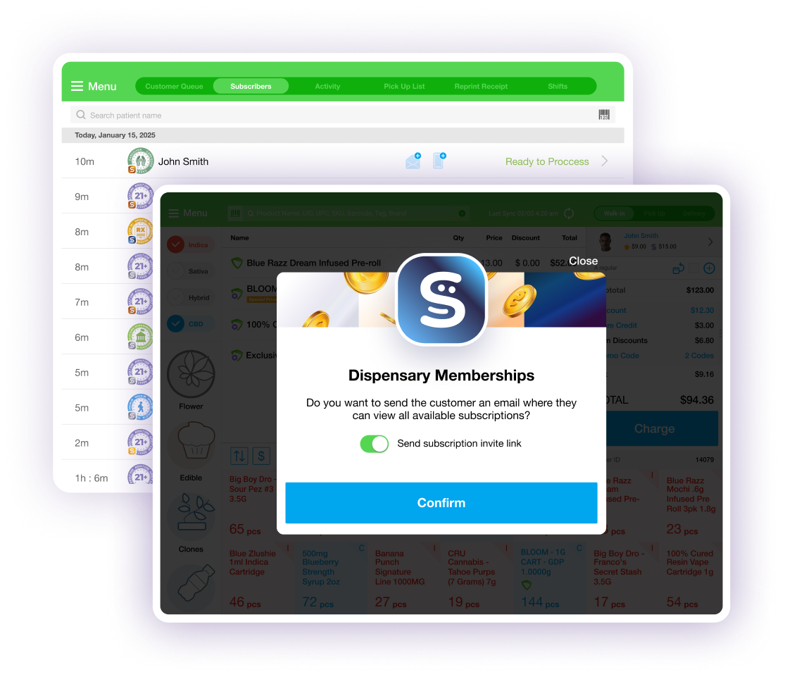Dispensary Memberships are built into the IndicaOnline ecosystem - no third-party tools or complex setup. Tiers, payments, discounts, POS, e-commerce, and the mobile app all work together. You set the perks and pricing, we charge via ACH, and the money goes directly to your bank account.